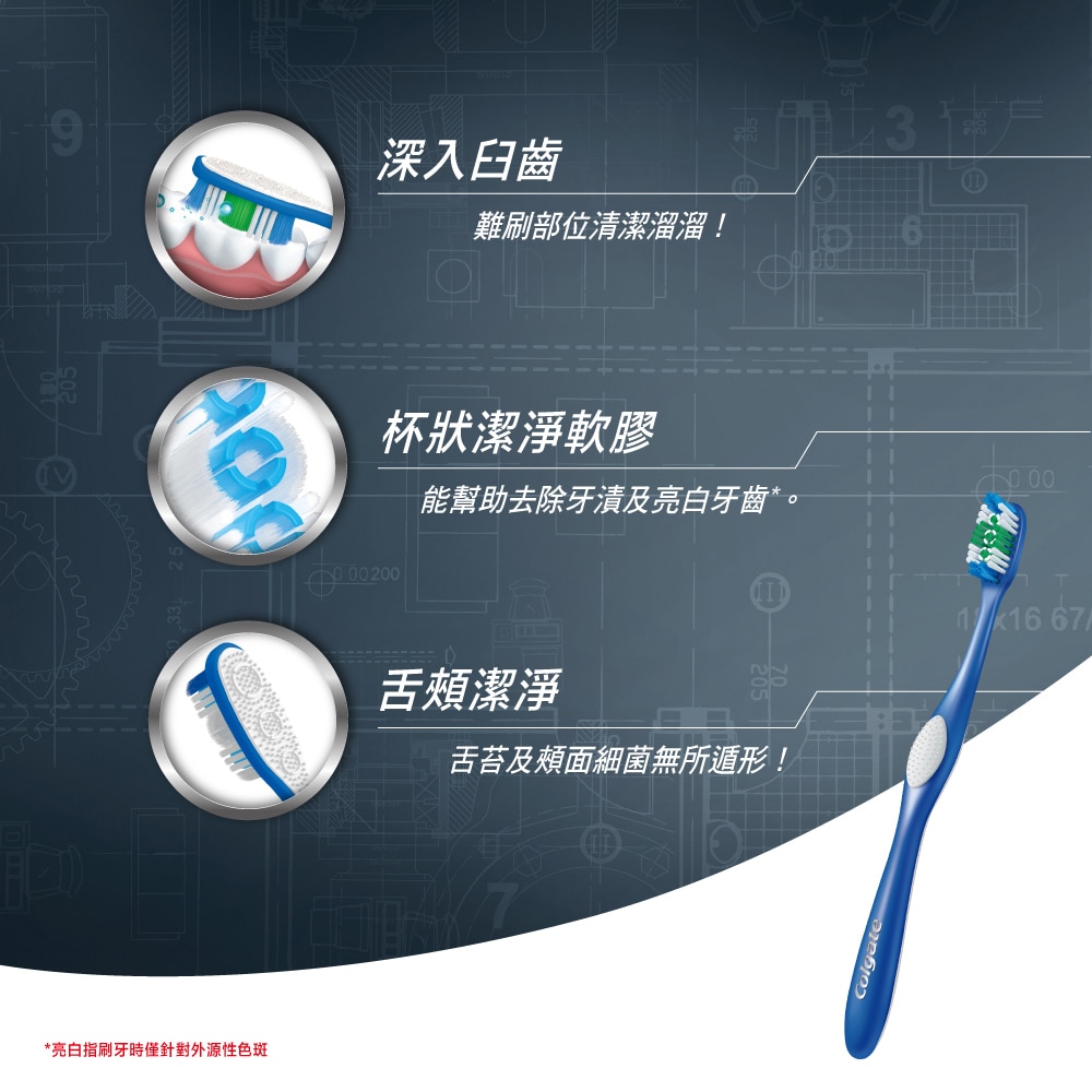 •貼齒型刷毛,幫助深入臼齒難刷部位,清潔齒縫及牙齦邊緣